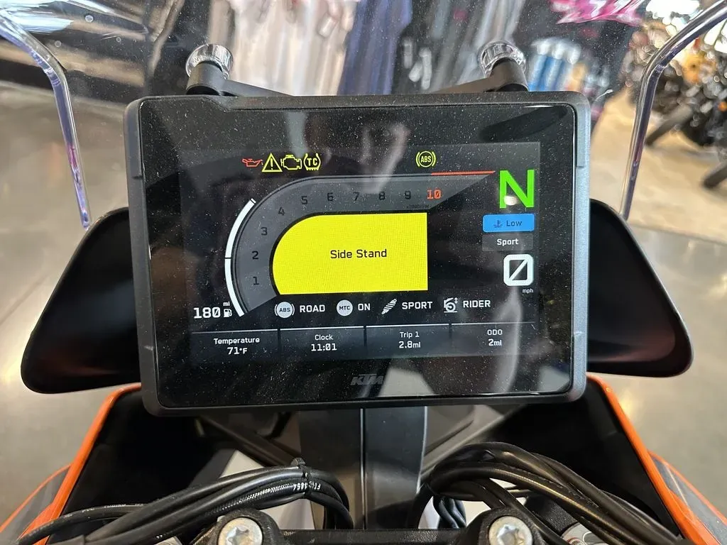 An all-new full color 7" TFT dashboard lifted from the KTM 1290 SUPER ADVENTURE S takes the KTM 1290 SUPER DUKE GT's dash into a different realm. Featuring a slew of features, from Turn-by-turn Plus navigation to a dedicated PERFORMANCE MODE, the display layout finds the ultimate balance between information, performance, and style.