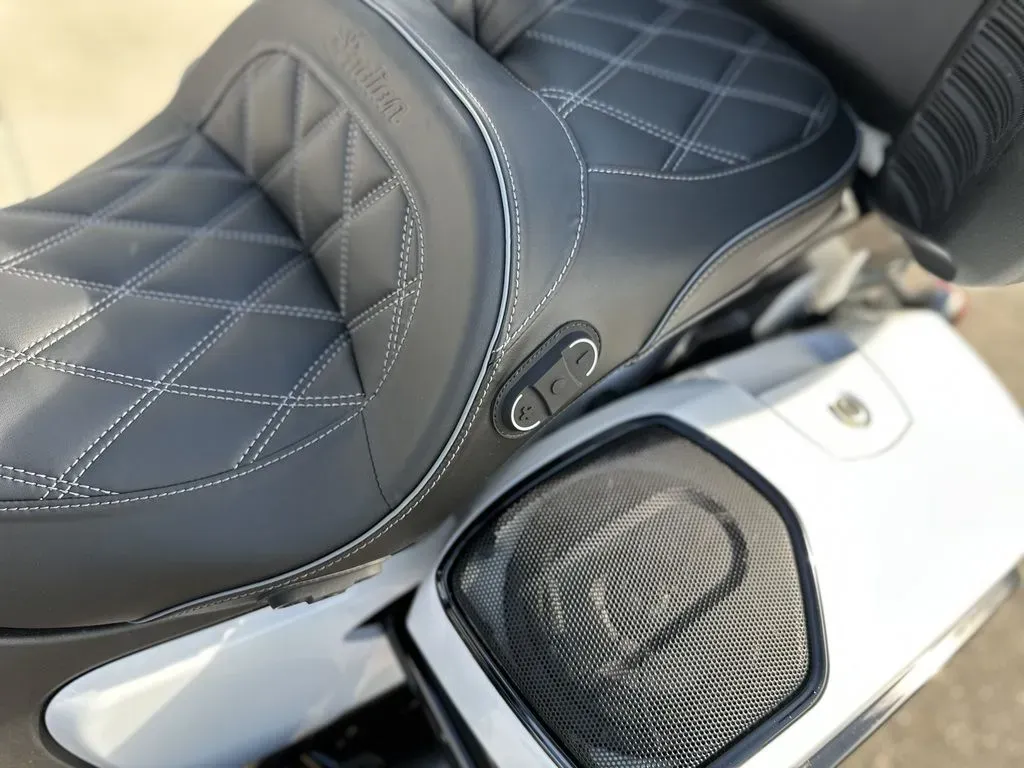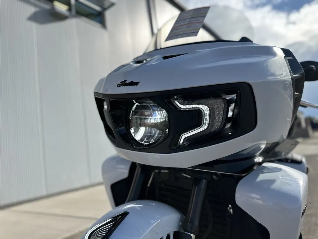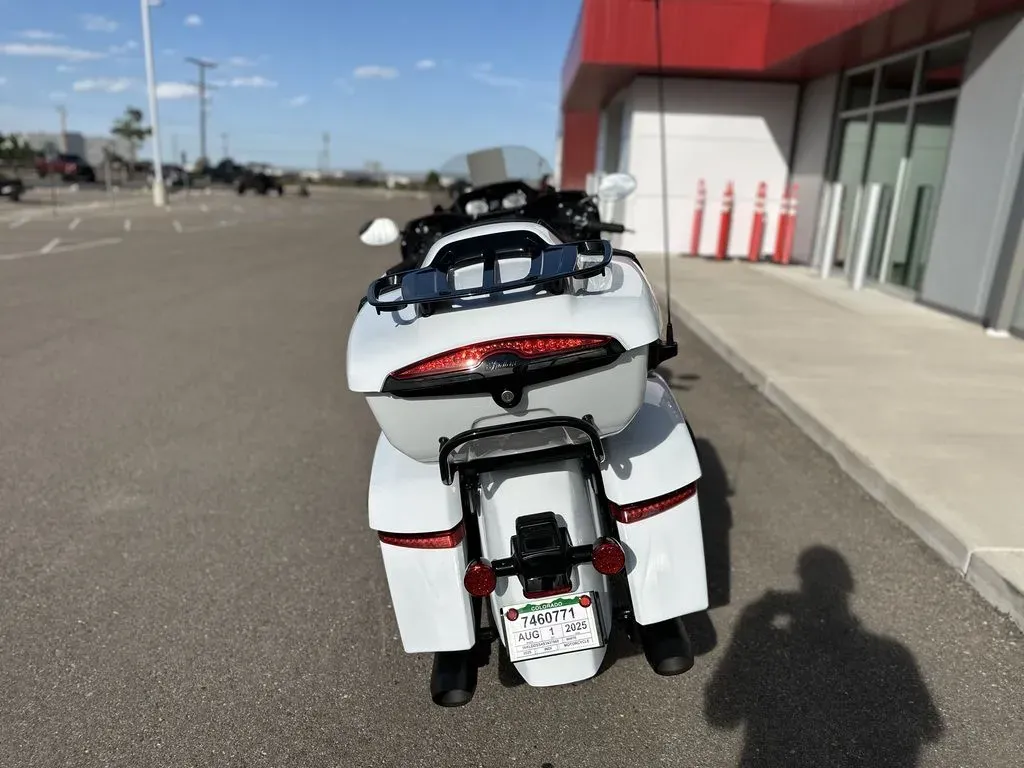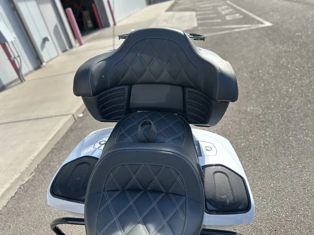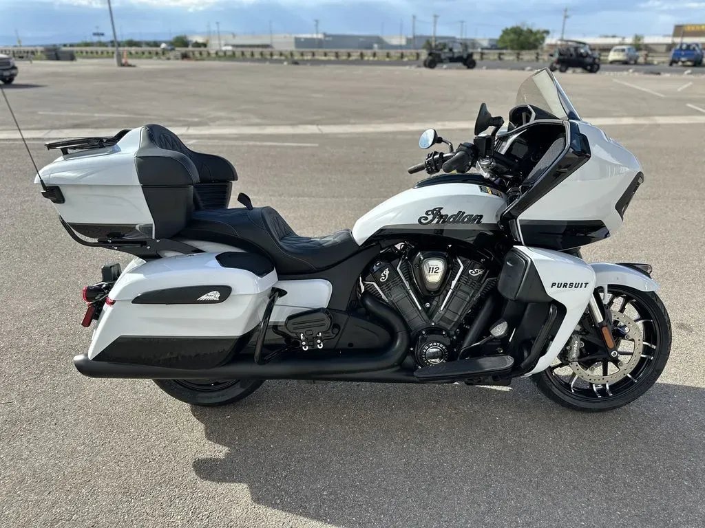 2025 Indian Motorcycle® Pursuit® Dark Horse® 112 w/PowerBand Audio Ghost White Metallic Crystal with Black Vivid