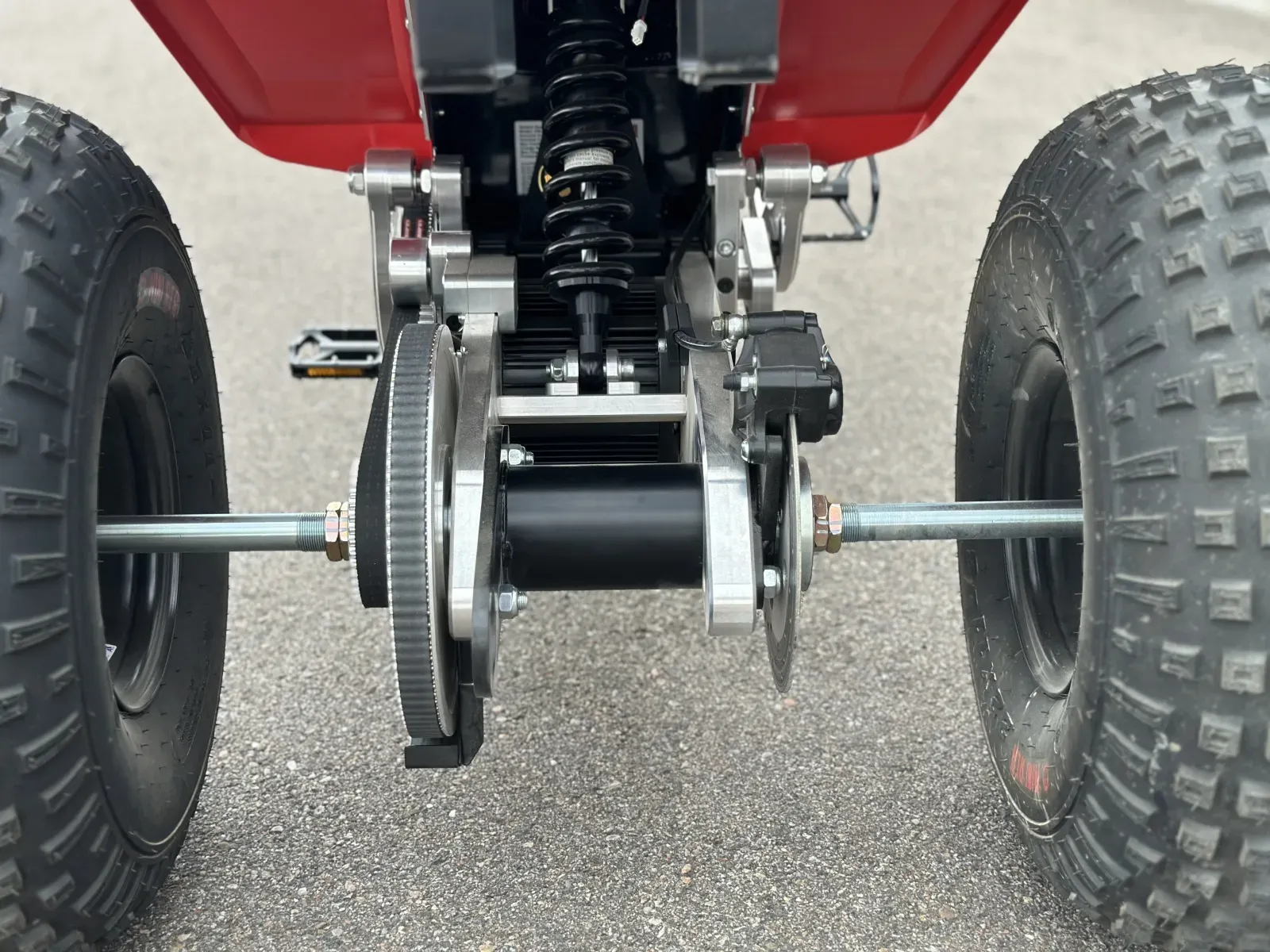 Smooth electronic throttle control feeds instantaneous power to the 750 watt motor delivering speed and torque to the rear wheels through a dual belt drive system. The secondary belt system is fed by the billet aluminum pedals which turn the rear axle just like a traditional bike.
