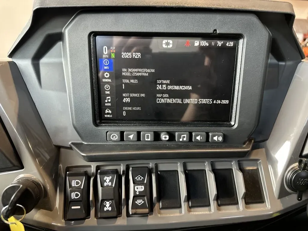 7 in Display Powered by RIDE COMMAND: Rear View Camera, Digital Instrumentation, Built-In GPS, Group ride (cell-based or GPS based), Topographic Mapping, Bluetooth & USB Smartphone Connectivity, AM/FM & Weather Radio, In-Vehicle Communications Capable With Optional Sena Headsets Speedometer, Odometer, Tripmeter, Tachometer, Coolant Temperature, Volt Meter, Hour Meter, Service Indicator, Clock, Gear Indicator, Fuel Gauge, Hi-Temp Light, Seatbelt Reminder Light, Fault Code Display, DC Outlet, Ambient Temp