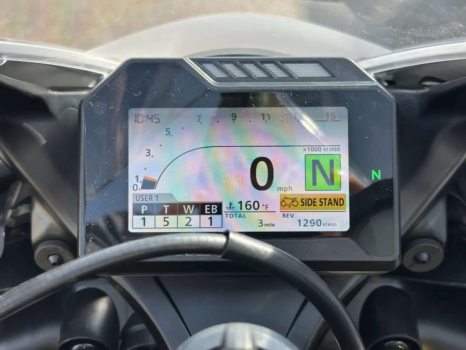 Full-color TFT screen gauges: Displays essential information such as speedometer, tachometer, gear position, fuel level, and riding modes.