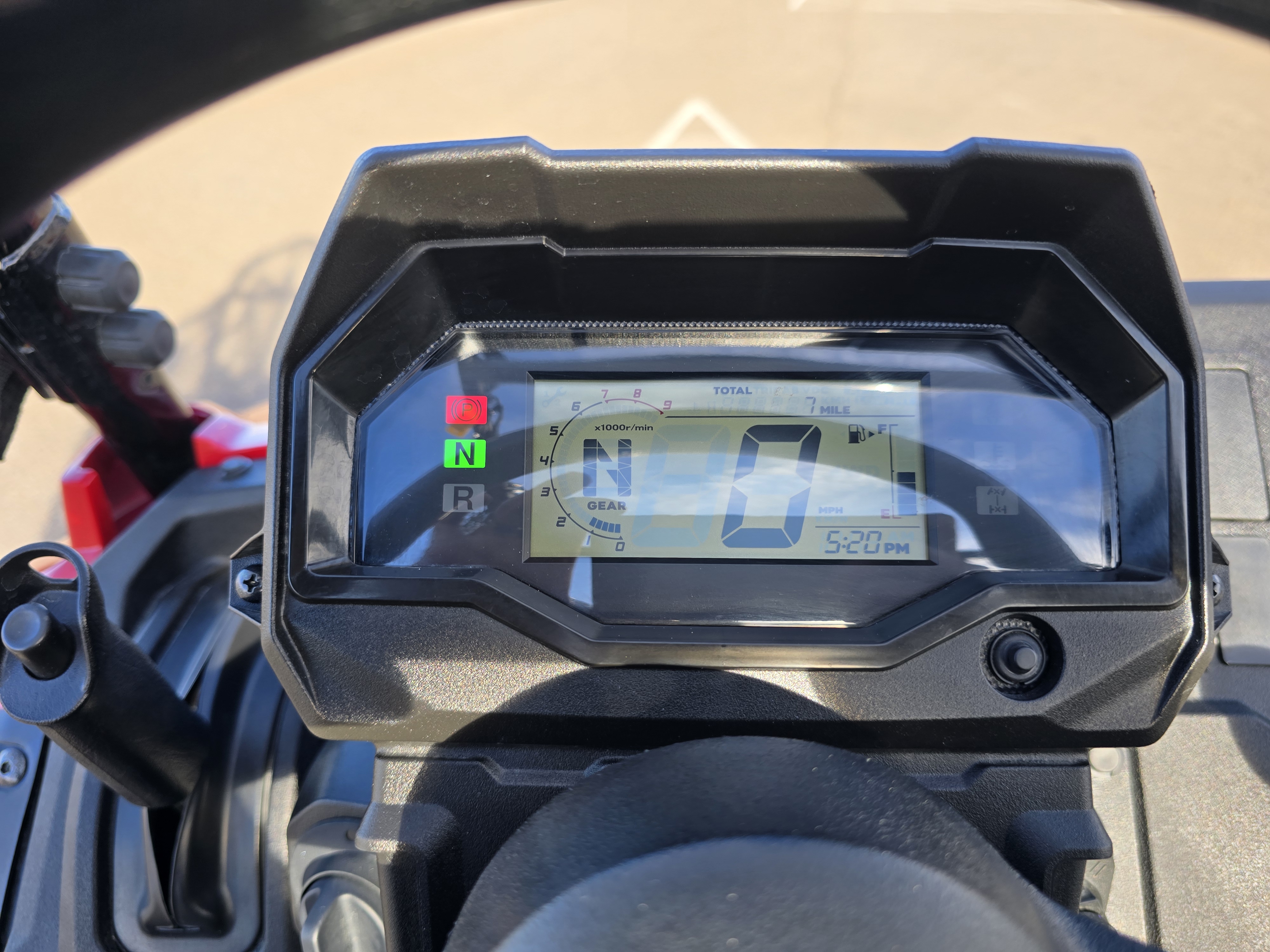 - The display features a large LCD screen, multiple trip functions, battery-voltage readout, a tachometer array, and more. It tilts with the wheel for easier reading.