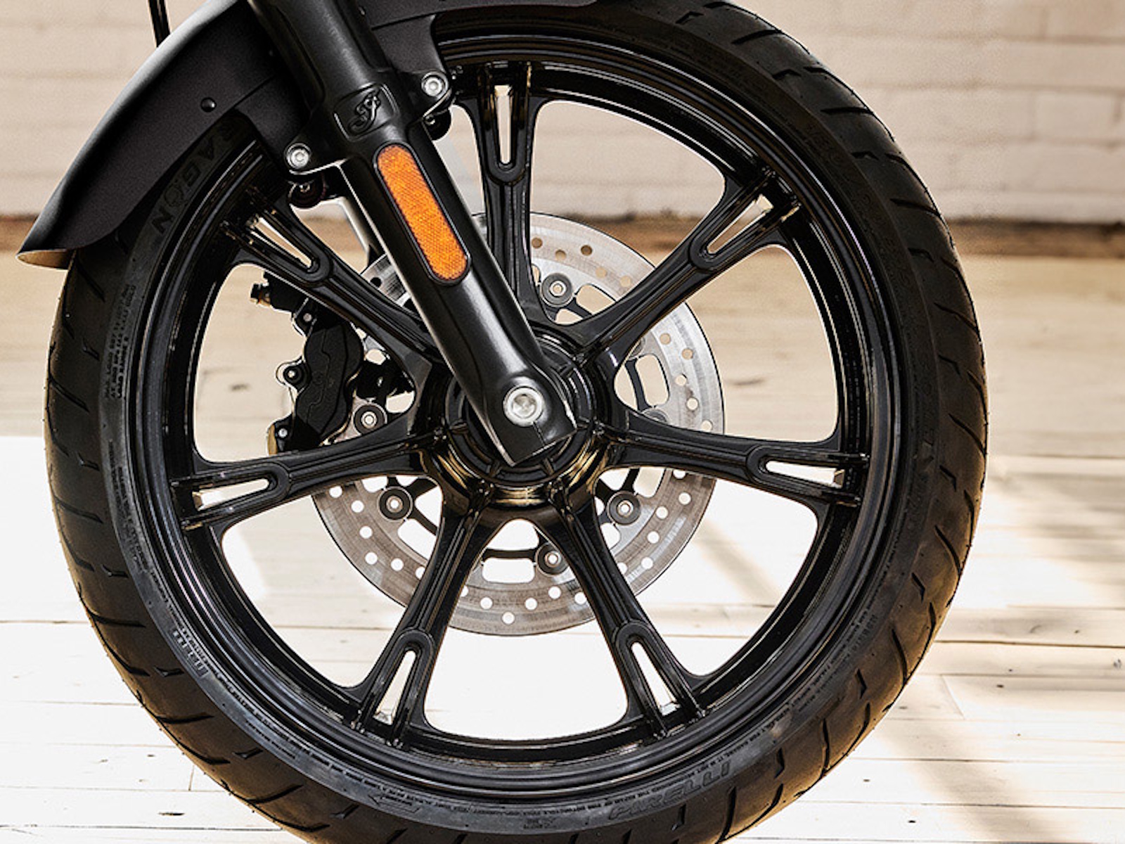 - The 19-inch front wheel adds to the menancing stance and will beg you to roll the throttle.