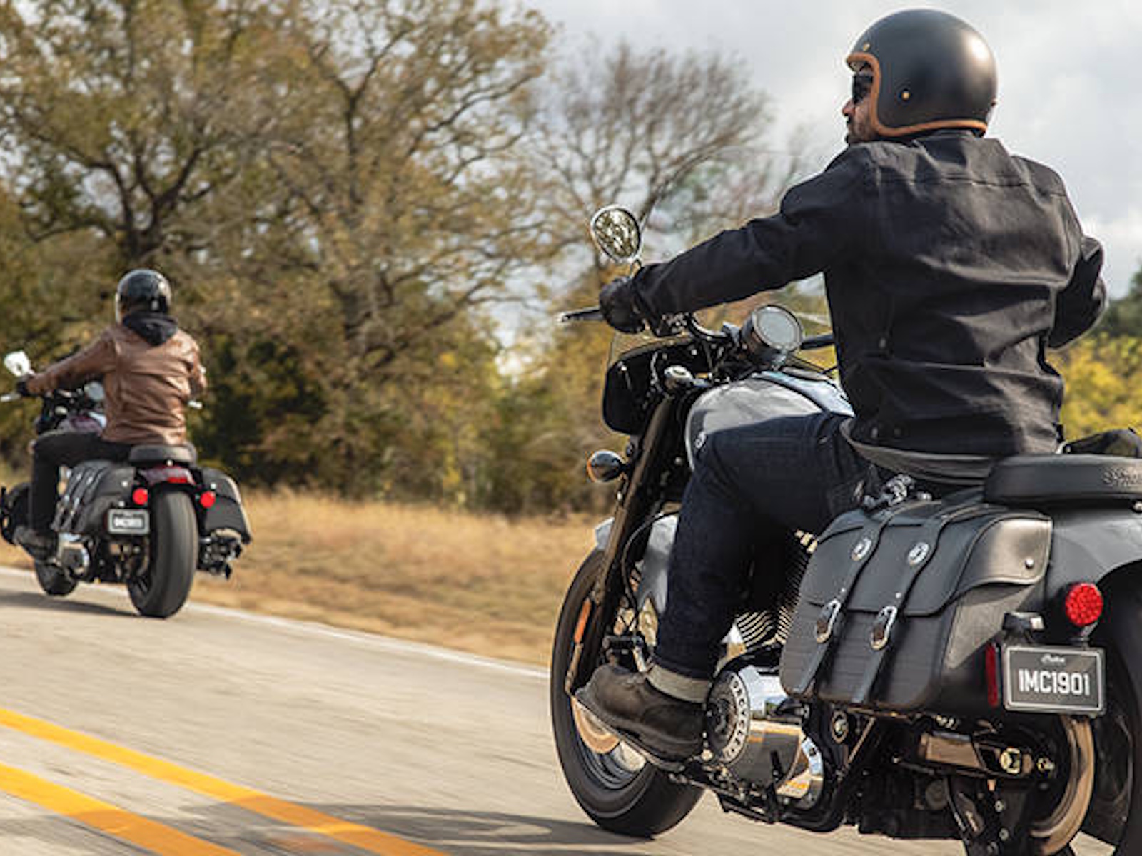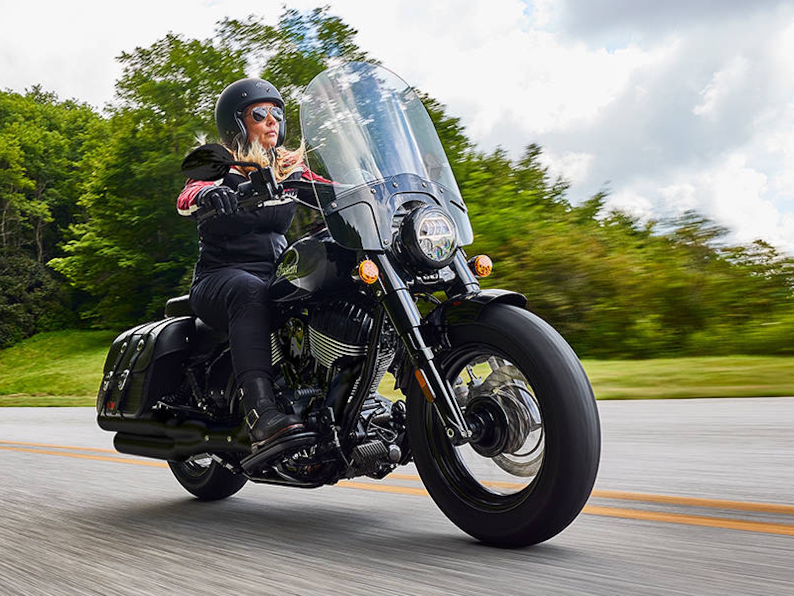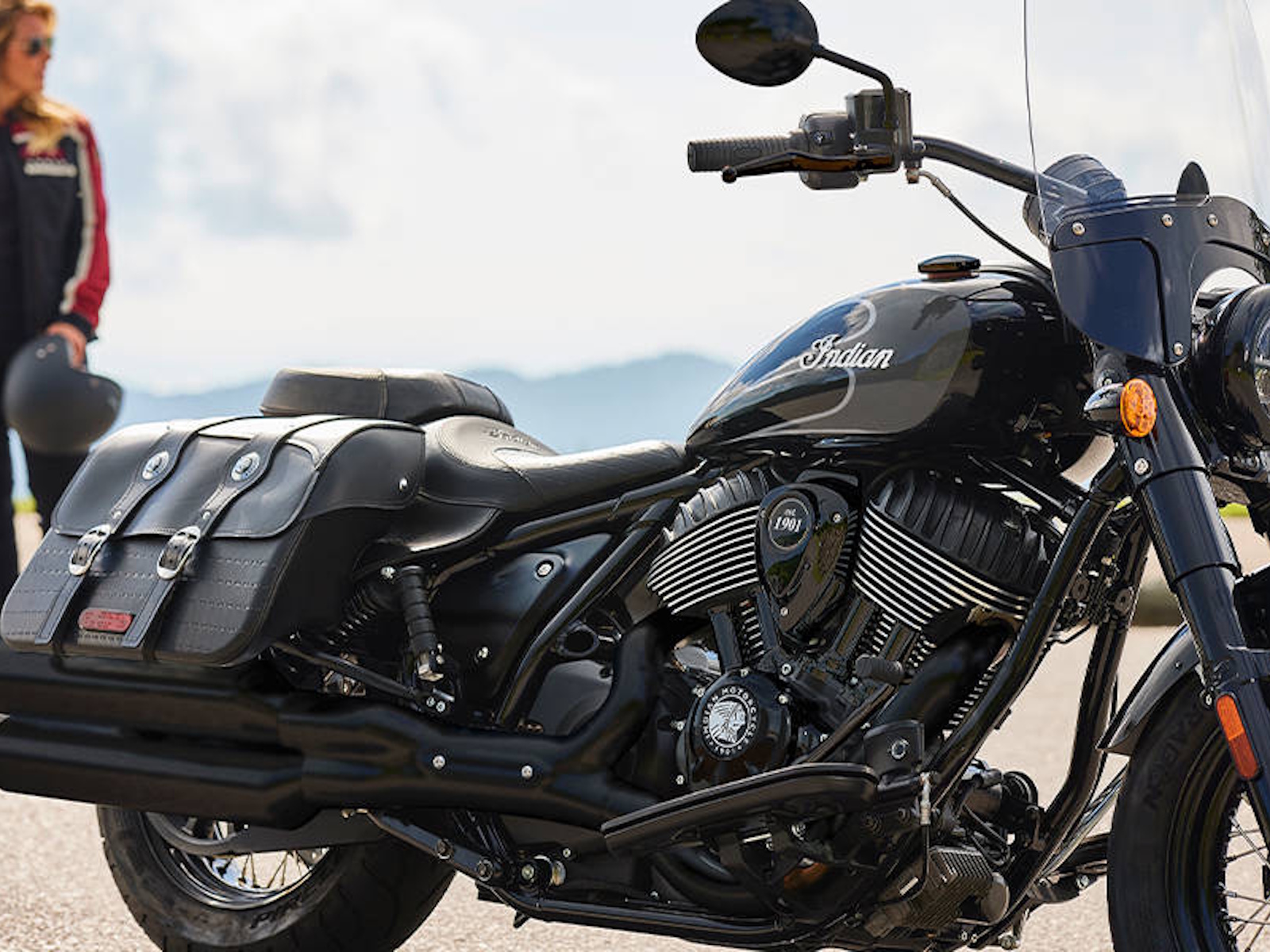 - Premium blacked out or chrome finishes, fork covers, wire wheels, and large headlight nacelle, and iconic Indian Motorcycle script badging on the tank, commanding attention at every corner.