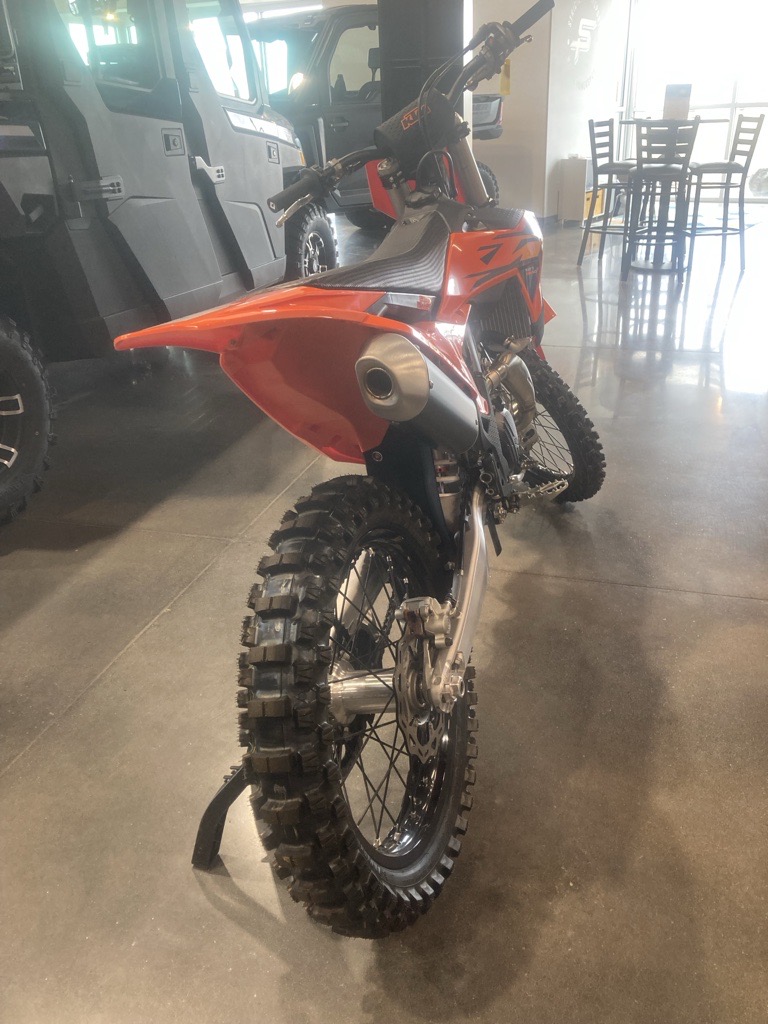 Powertrain: The bike is powered by a 449.9cc, single-cylinder, four-stroke SOHC engine with a 5-speed transmission. KTM continues to focus on maximizing usable power throughout the rev range, particularly in the mid-range and when exiting corners.