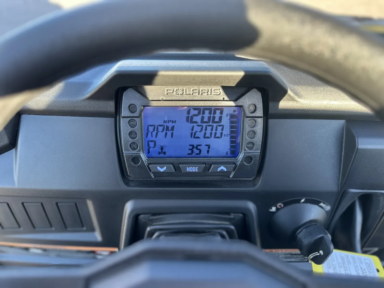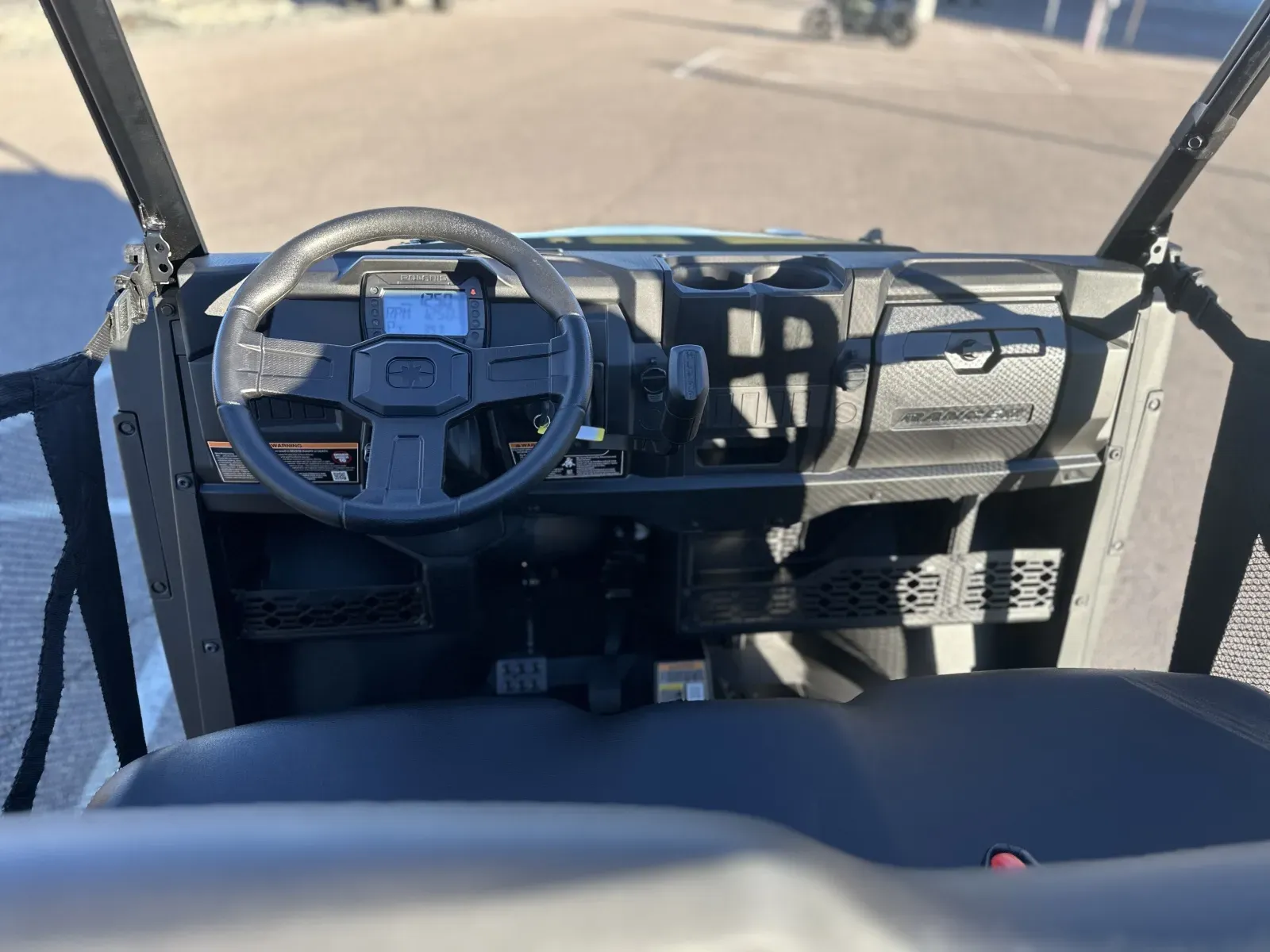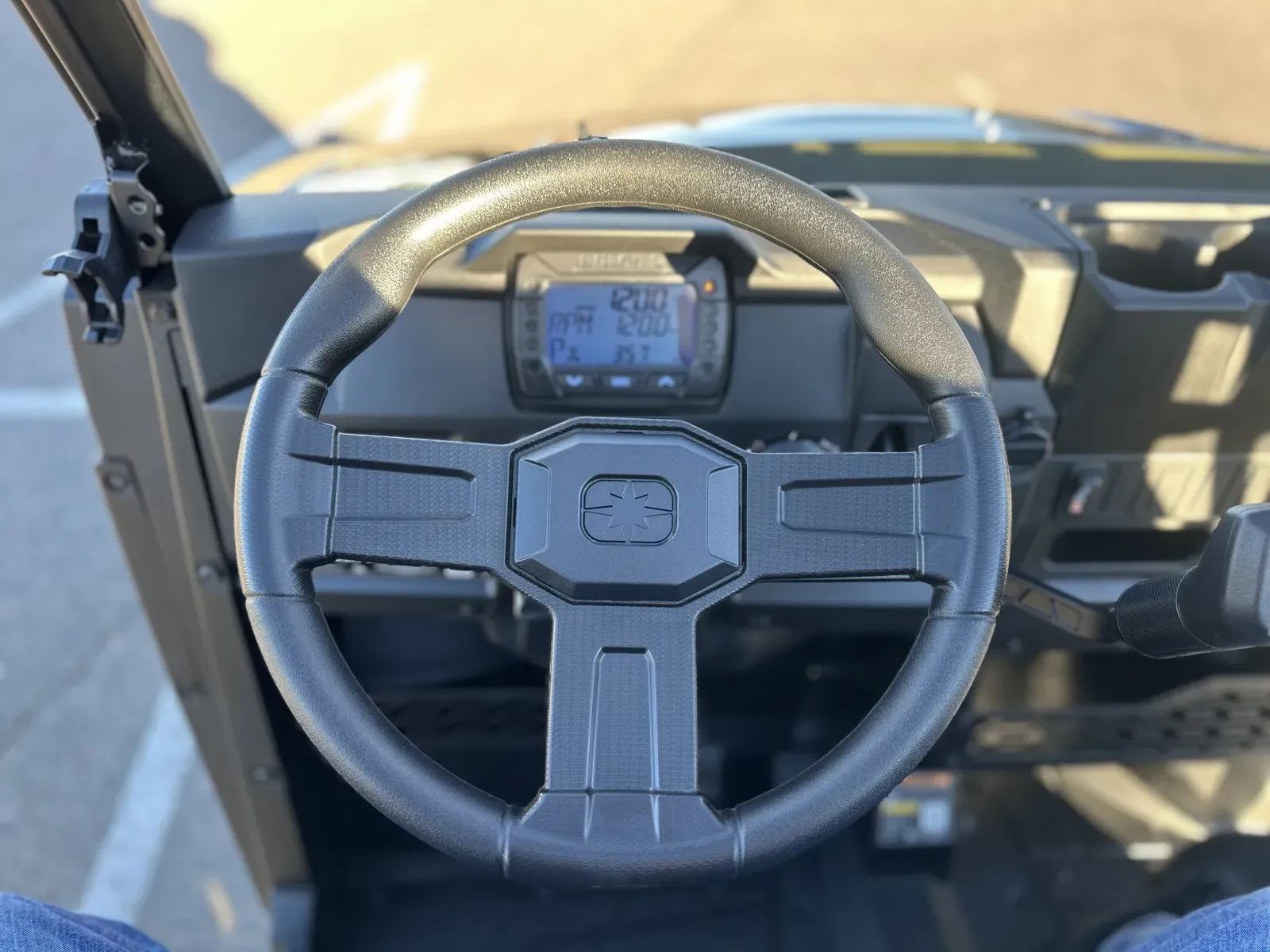 Driver: 4 in LCD rider information center: user-selectable blue/red backlighting and brightness, programmable service intervals, speedometer, tachometer, odometer, tripmeter. clock, hour meter, gear indicator, fuel gauge, coolant temperature, voltmeter, service indicator and codes, seat belt reminder